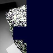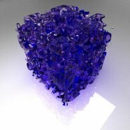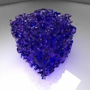 Here the fluid has been rendered with a glass material - creating many internal reflections and refractions.